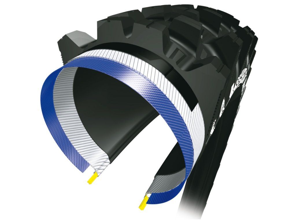 * Technologie Gravity Shield: další generace ochrany proti defektu, konstrukce ochrany pláště osvědčené na závodech Enduro EWSs je robusní a složena z vláken s vysokou hustotou 3x60tpi