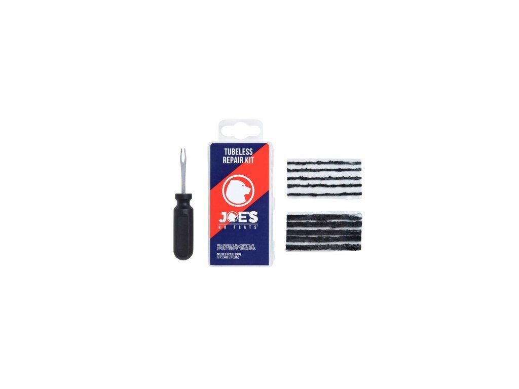 Kompaktní sada na opravu bezdušových plášťů, kterou lze uložit do jakékoli kapsy. Plastový kryt umožňuje bezpečné přenášení a praktické využití. Dvě různé velikosti knotů zajistí utěsnění jakékoliv díry.