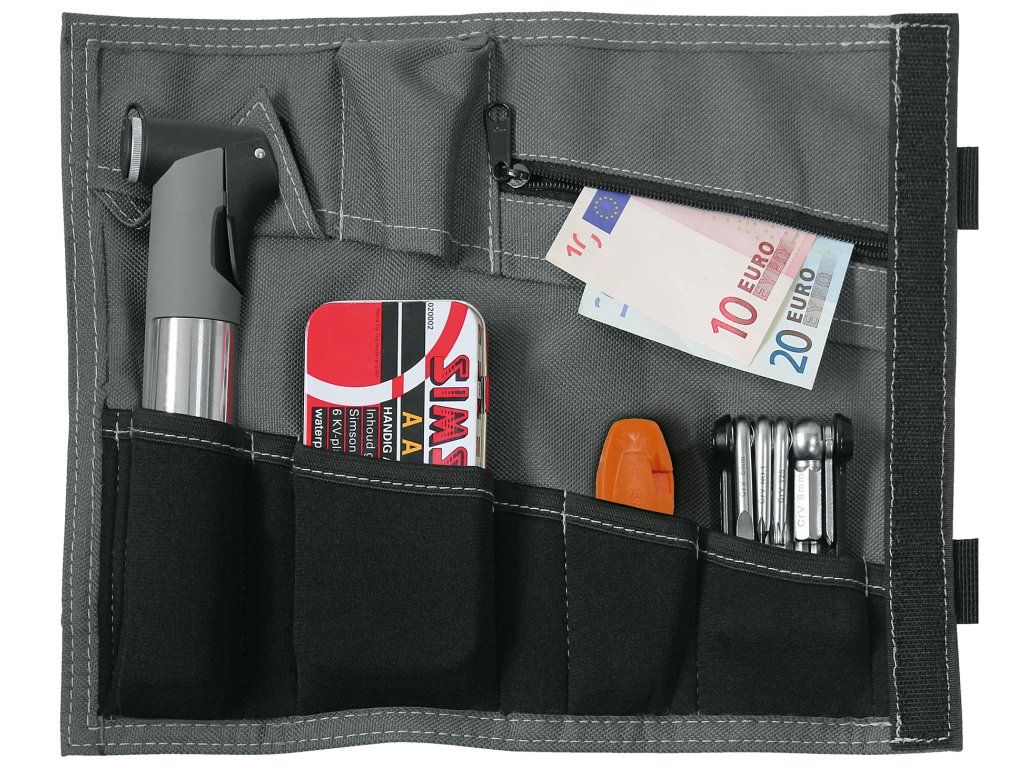 Tool wrap je praktický kapsář na nářadí na kolo. Můžete do něj dát třeba minihustilku, sadu na lepení, nářadí či cokoliv jiného. Tímto bude vše na jednom místě a hned po ruce.
