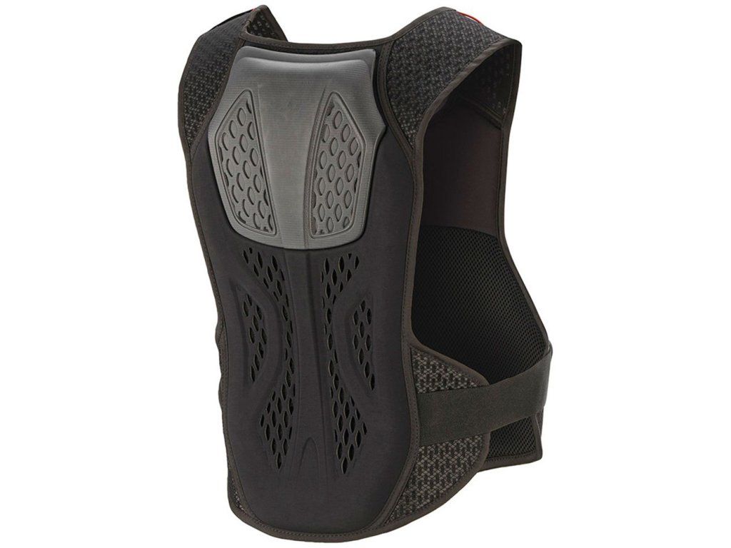 Extra lehký a vzdušný krunýř s nastavitelným ledvinovým pásem, kompatibilita s krčním chráničem, hmotnost: 800g.