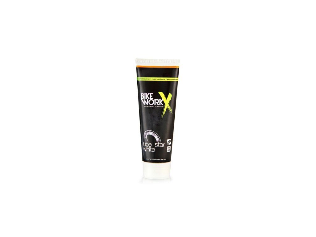 Bikeworkx Lube Star White je bílé plastické mazivo vysoce výkonné mazivo s obsahem PTFE využitelný pro mazání kluzných i valivých ložisek, nábojů, hlavového složení, pedálů apod. Dobrá odolnost proti vodě, zajisťuje dlouhou životnost ložisek