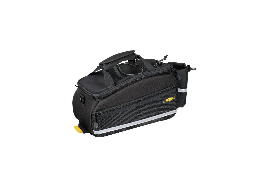 Odolná brašna TrunkBag kompatibilní s technologií MTX QuickTrack®. Kromě hlavní komory obsahuje dvě boční přihrádky ze síťoviny pro větší kapacitu a zadní držák na láhev.