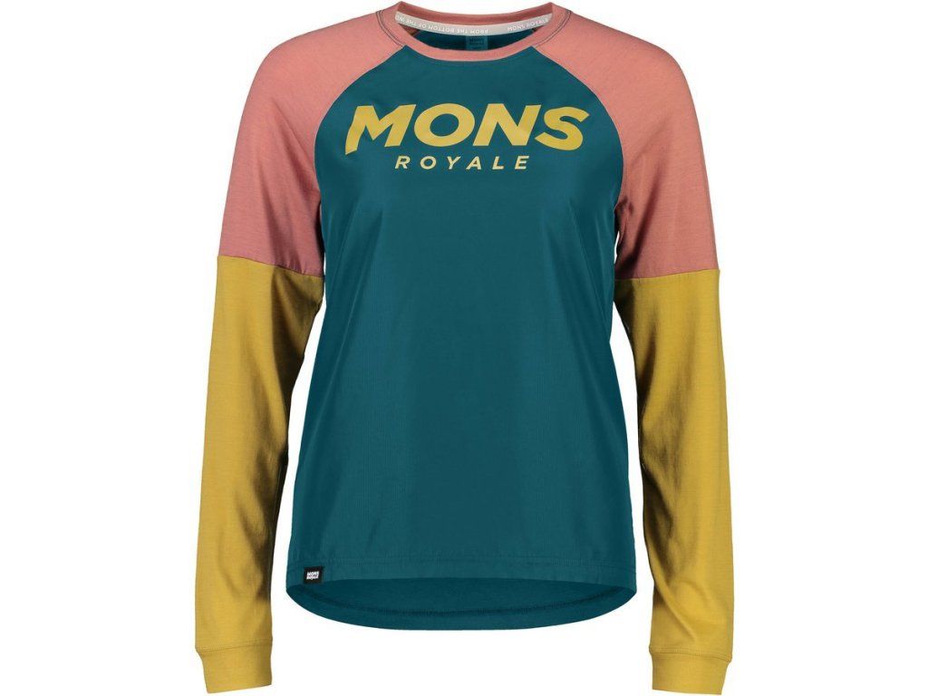 merino triko Mons Royal TARN FREERIDE LS WIND JERSEY deep teal / pink cl. / honey