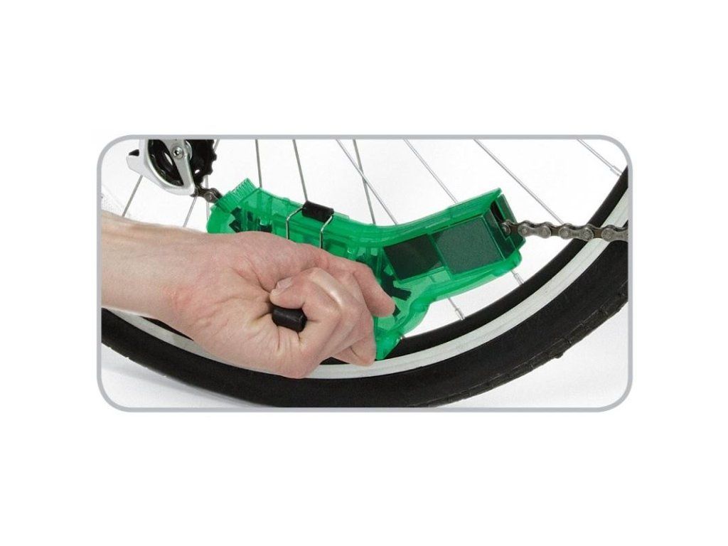 Nová vylepšená myčka řetězu má tři rotující kartáče. Díky stěrkám u výstupu z myčky řetěz nevytahuje čistící prostředek ven. Myčka má na dně silný magnet, který přitahuje kovové zbytky a špony při mytí. Není třeba demontovat řetěz. Myčka se nasadí na řetěz, který je během krátké doby mytí zcela čistý. Myčka se snadno nasazuje i snímá z řetězu a má odnímatelné držadlo. Sada obsahuje 120 ml účinného odmašťovače EcoTech® 2 a 60 ml univerzálního maziva Teflon™ Plus. Čistící kartáčky jsou vyměnitelné.