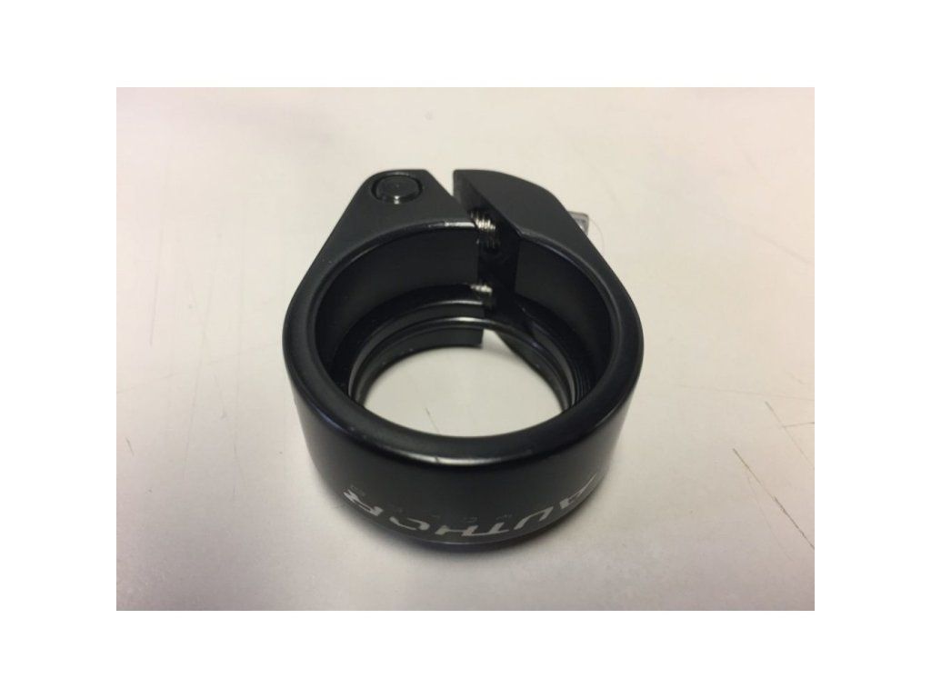 Podsedlová objímka Author. Konstrukce se dvěma šrouby zaručuje velmi pevné dotažení, které zabraňuje zajíždění sedlovky do rámu.