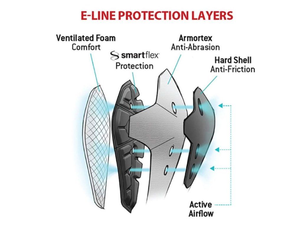 Novinka od značky G-FORM v podobě propracovaných chráničů kolen E-Line, které jsou navrženy pro ty nejnáročnější jízdy. Chrániče jsou vybaveny novými odolnými prvky, které umožní jezdci dovolit si na trailu víc a v případě pádu ho také více ochrání. Chránič kryje tvrdá skořepina, která lépe snáší přímý kontakt s terénem při pádu, aniž by se samotná aktivní pěna G-Form mohla poškodi. Pod ní se nachází ochranná tkanina Armortex, která je odolná proti oděru i roztržení. Materiál samotného chrániče je tvořen z inteligentní hmoty Smartflex, která je měkká a poddajná. Při nárazu však ztuhne a efektivně rozloží síly, které by jinak působily na samotné koleno. Poslední vrstvou je měkká pěnová výstelka pro co nejpohodlnější nošení. Hledáte-li spolahlivé a propracované chrániče na celodenní ježdění, pak jsou nové G-FORM E-Line skvělou volbou.