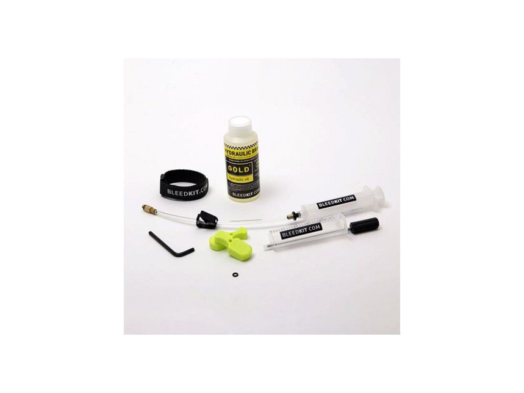 Zlatý hydraulický olej 100 ml - vlastní značka Bleedkit.com pro vysoce výkonné oleje pro brzdové systémy určené pro použití s minerálním olejem.