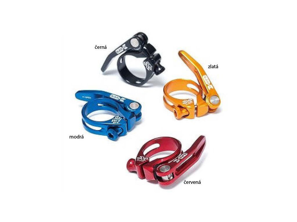 Sedlová objímka Bomb QR s rychloupínákem a dobrou cenou. Průměr 34,9mm., něklik barevných variant