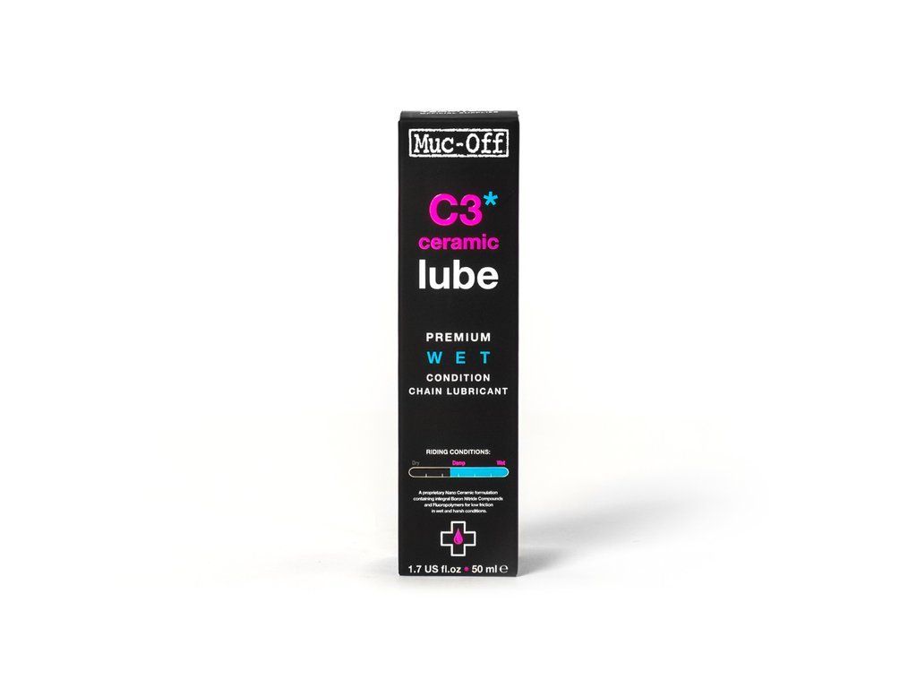 Muc-Off C3 Ceramic Lube je mazivo, které vás uvádí do budoucnosti. Jeho patentované složení dosahuje neuvěřitelného poměru odolnosti a velmi nízké frikce. Sloučenina nitridu boritého má totiž strukturu grafitu a společně s diamantem patří v současné době k nejtvrdším známým látkám. Odolnost C3 je dále vylepšena fluoropolymery.