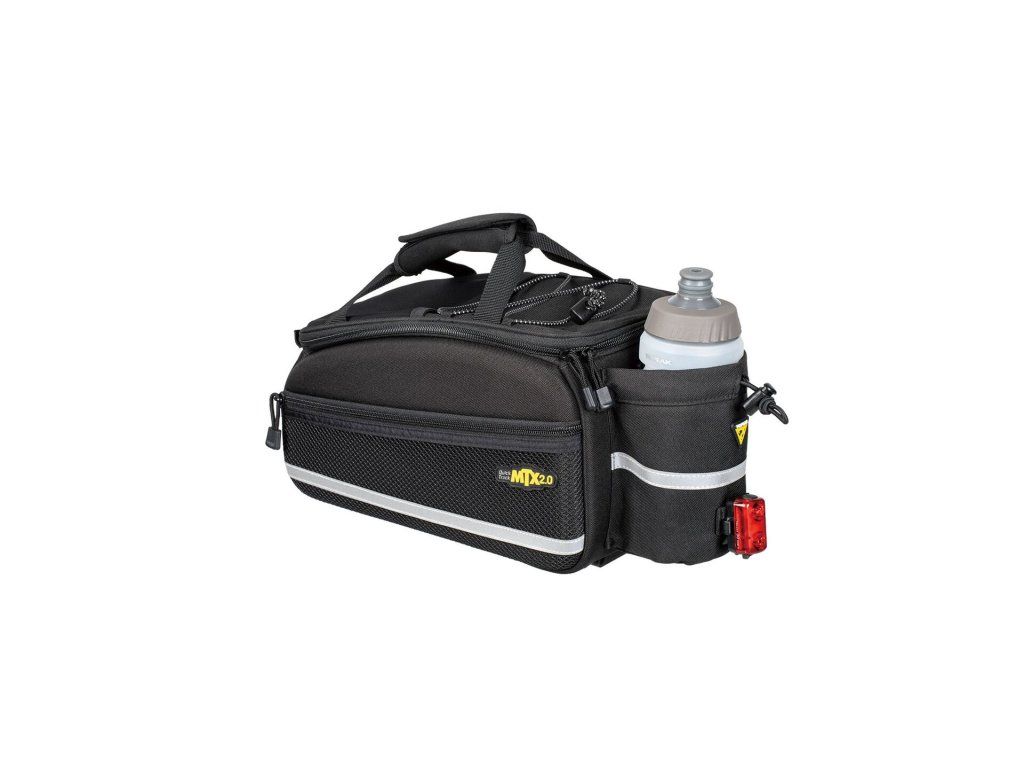 Odolná brašna TrunkBag kompatibilní s technologií MTX QuickTrack®. Kromě hlavní komory obsahuje dvě boční přihrádky ze síťoviny pro větší kapacitu a zadní držák na láhev.