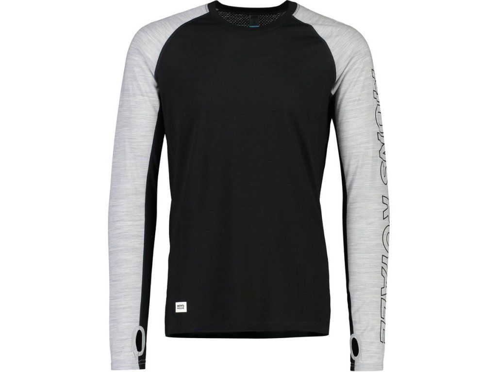 triko merino MONS ROYALE TEMPLE TECH LS black / grey marl