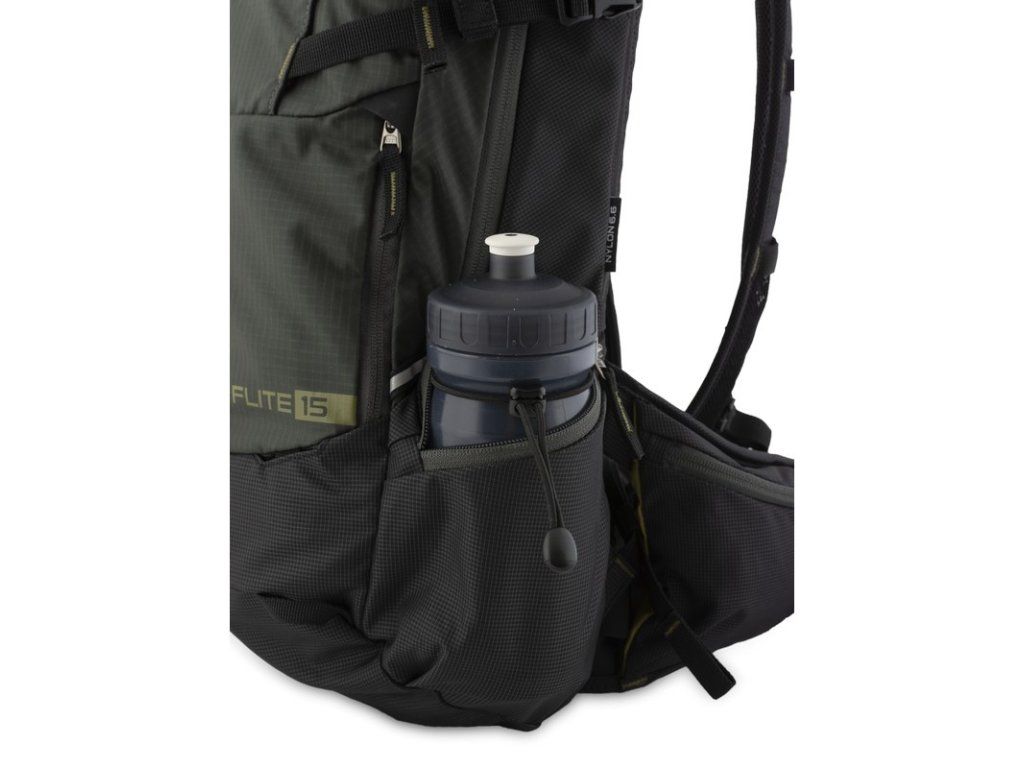 Boční kapsy na láhev s praktickou pruženkou pro zajištění