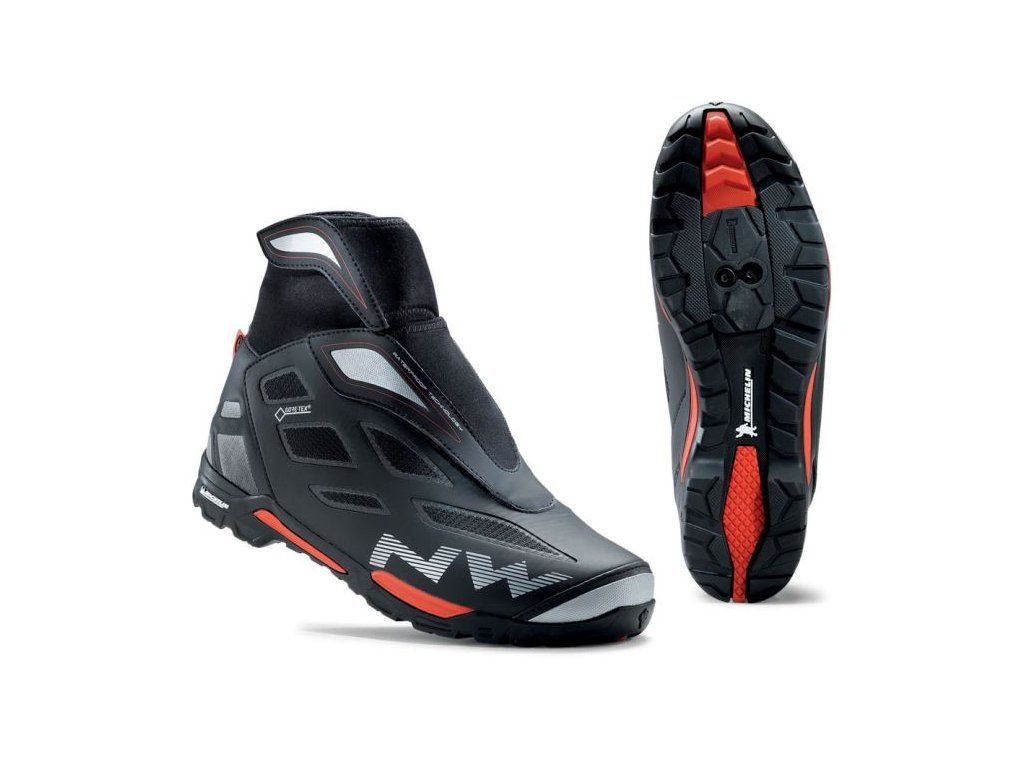 Zimní MTB tretry Northwave na podrážce Michelin Explorer s kalibrovanou tvrdostí kombinující optimální přenos síly v pedálové zóně a zachovávající přirozený flex v ostatních částech pro pohodlnou chůzi. Podrážka Michelin vydrží až o 28% více, nežli běžná guma, navíc nabízí skvělou přilnavost na všech typech povrchu. Integrovaná Gore-Tex Pique membrána Vás udrží v teple až do -3°C. Konstrukce pájenými švy, super rychlé zapínání SL2 se dvěma power popruhy pro lepší ochranu, neoprenový kotníkový úplet, vnitřní vložka GTX pracuje spolu s membránou materiálu a pomáhá udržet nohu v teple. Reflexní prvky, velikost uvedena v US číslování. Rozsah teplot: -3°C/+15°C.